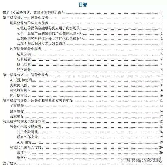 金融科技已经成为了每家银行的重点战略方向,各银行在年报中也都重点披露了金融科技的最新进展。我们认为智能化零售作为后台辅助,是发展任何零售业务的基础。有且只有在通过金融技术将各类信息组成完全数字化的大数据库,才能在场景中完成AI生物识别确定客户、精准营销确定产品、区块链和聚合支付等手段确定交易流程、智能投顾和大数据风控进行投中和贷中管理的金融产品全链条服务。