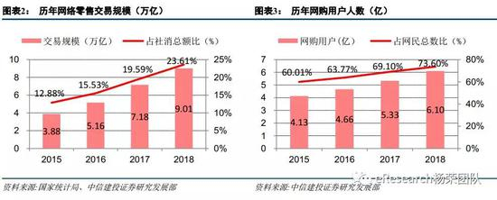 就线上场景来说,尤其是购物、购票、外卖等日常高频消费场景已经被几家互联网公司牢牢掌握,市场份额巨大且用户黏性强,电子商务的快速发展对于我国居民消费方式的转变是影响巨大且不可逆的,不能在线上零售业务中占据一席之地的银行必将在场景化竞争中处于入口缩窄、客户流失的全面劣势。18年末国内网络零售市场交易规模达9.01万亿,同比增长25.57%,占社会消费品零售总额的23.61%,占比同比增长4.02个百分点;网购用户规模达6.10亿,同比增长14.45%,占网民总体比例达到73.60%,占比同比增长4.50个百分点。