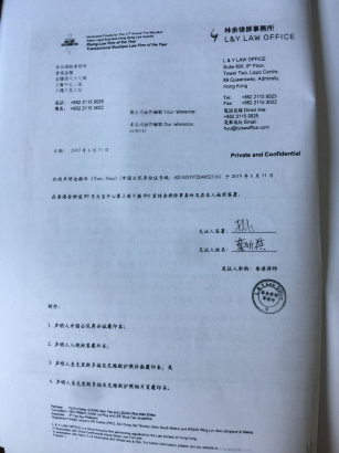 (颜华在香港林余律师事务所律师见证下签署的个人声明)