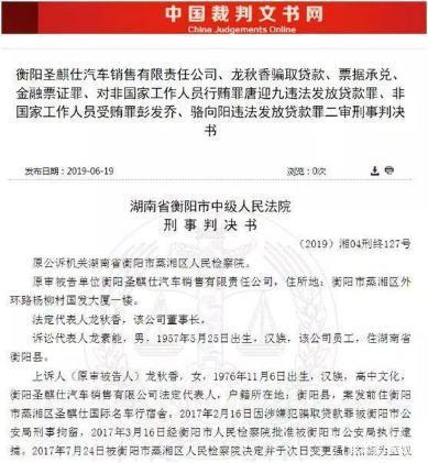 刑事判决书显示,中国工商银行股份有限公司衡阳市分行牡丹卡中心原主任唐迎九、衡阳师院支行原行长彭发乔、师院支行原客户经理骆向阳是圣麒仕公司骗贷案中的三个关键人物。