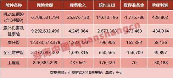 中华财险2018年年报显示,公司2018年度保费收入居前 5 位的商业保险险种是机动车辆险(含交强险)、 意外伤害及健康险、责任险、企业财产险、工程险。责任险作为公司第三大险种,去年收取保费18亿,年末承担保险金额123335亿。