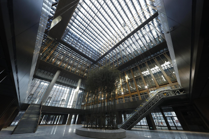 在能耗方面,亚投行标准层办公区采用单元式双层内呼吸幕墙加电动遮阳系统,其能耗远低于现行公共建筑节能标准。“七个中庭采用景观玻璃取光和立面的玻璃幕墙相结合,白天大厅内可实现全自然采光,完全不用灯具照明。”作为亚投行总部办公大楼,北京亚洲金融大厦也是一座智能化写字楼和“绿色办公楼”。据悉,其配备的智能照明系统,可以降低30%的电能消耗;智能天窗可根据温度、风速、雨量等条件自动开合,实现通风与室温控制;楼内的温度、湿度、PM2.5值等可实现分区调控,最大程度保证人体舒适。