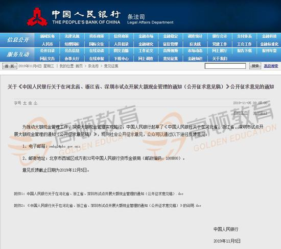 11月5日,中国人民银行突发通知,准备在河北省、浙江省、深圳市试点开展大额现金监控管理!