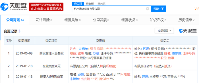 据天眼查,孚临科技股东及监事宋锦怡参股的杭州承巽科技有限公司法人为苏姗,烈照阳金服监事同样名为苏姗。此前,烈照阳金服股东及法定代表人、总经理、董事长等均谭彦博。
