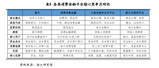 各类消费金融平台核心竞争力对比