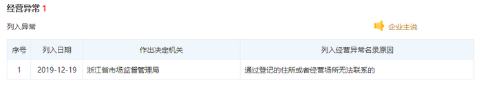 近日,天眼查信息显示,第三方支付机构航天支付的运营主体“浙江航天电子信息产业有限公司”被列入经营异常名录,原因系通过登记的住所或者经营场所无法联系,作出决定机关为浙江省市场监督管理局,列入日期为2019年12月19日。