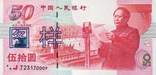1999年,为庆祝中华人民共和国成立五十周年,中国人民银行发行了“中华人民共和国成立五十周年”纪念钞。面额为50元。这是我国发行的首张纪念钞。