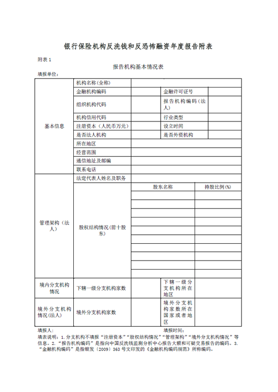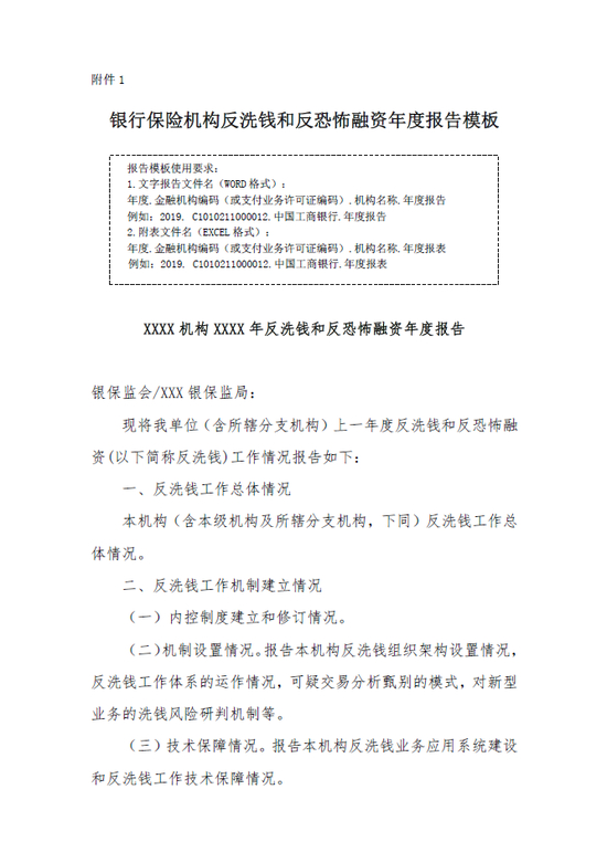 附件:1.银行保险机构反洗钱和反恐怖融资年度报告模板