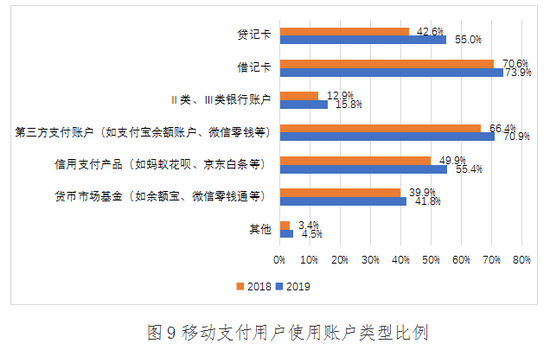 (三)用户选择借记卡和第三方支付账户支付的较多,贷记卡和信用支付产品使用占比提升