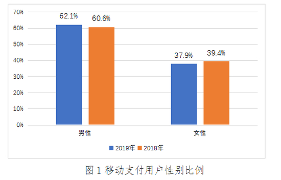 2019年,男性用户占全部移动支付用户的62.1%,女性用户占全部移动支付用户的比例为37.9%。与2018年相比,移动支付的男女用户占比基本保持一致。