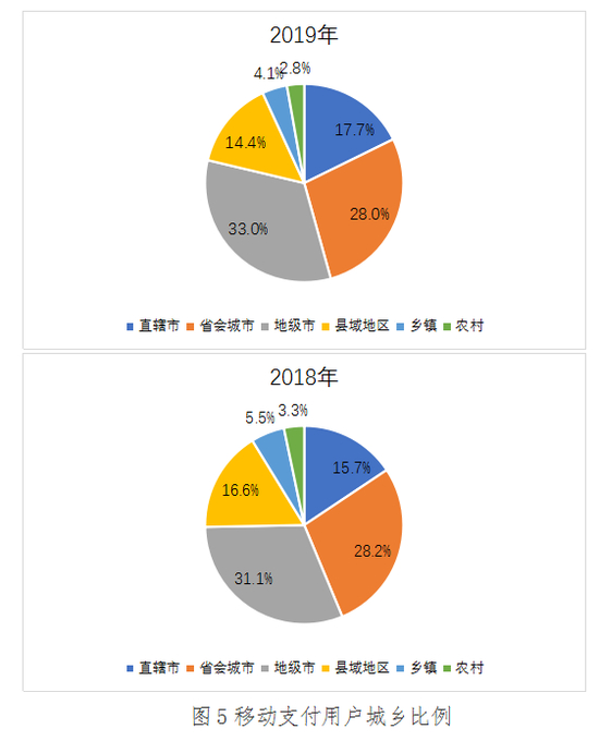 (五)移动支付用户以城市为主,城乡比例与上年持平