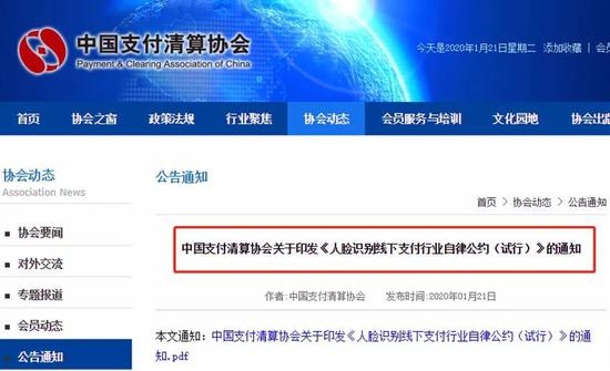 为规范应用创新,防范安全风险,1月21日中国支付清算协会印发了《人脸识别线下支付行业自律公约(试行)》的通知。