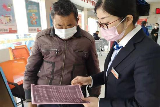 歙县农商银行员工向客户发放个人定存到期自动延期的通知。(陈超晨)