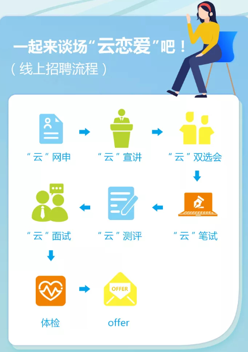 一是渠道方面,将线下宣讲会转换为线上宣讲,通过与前程无忧的合作,举办了线上的空中宣讲会,让学生通过观看视频,深入地了解我行企业文化、工作氛围、工作内容、福利与发展前景等内容。同时,我们积极参加各大高校举办的线上招聘会,目前不少高校将线下双选会移到了线上,也非常符合现阶段的需要;