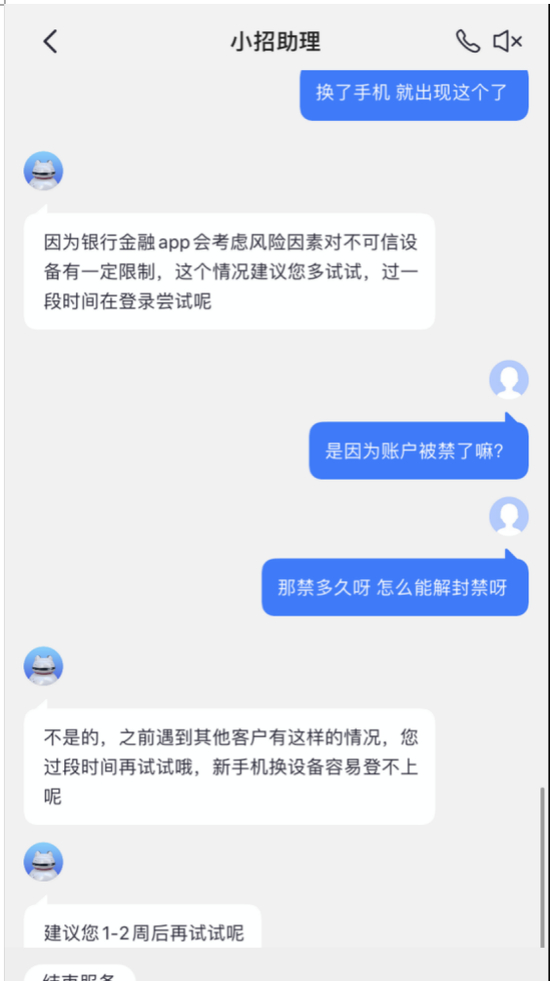 招行客服对新浪金融曝光台表示,由于银行金融APP会考虑风险因素对不可信设备有一定限制,这个情况建议多试一试,1至2周后再尝试登录。新手机也存在登录不上的问题。