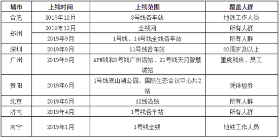 在生物识别过闸技术应用上,报告显示目前只有上海地铁上线了掌静脉识别过闸,从AFC领域整体上来看,生物识别过闸仍然处于前期探索和实验阶段,多数城市轨道交通尚未大规模使用推广,以下8个城市轨道交通上线了面部识别过闸,其中合肥、贵阳、南宁等地并未针对普通人群全面开放。