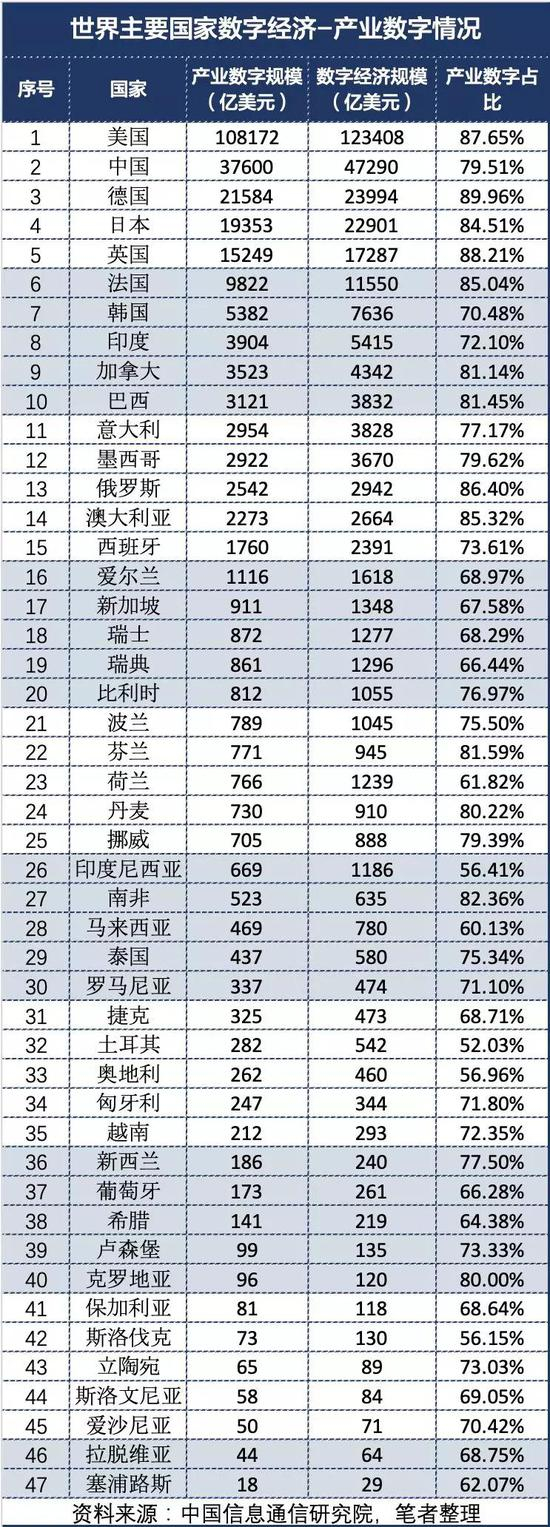 各国产业数字化在数字经济中占据主导地位。2018 年,各国产业数字化占数字经济比重均超过 50%,德国产业数字化占数字经济比重达到 90%,英国、美国、澳大利亚、法国、日本、南非、巴西、加拿大等 12 个国家产业数字化占比也均超过 80%,其余绝大部分国家产业数字化占比介于 60%-80%之间,另有奥地利、印度尼西亚、斯洛伐克、土耳其等 4 国产业数字化占数字经济比重介于 50%-60%之间。数字经济规模越大的国家,产业数字化占数字经济比重越高。产业数字化的巨大差距是造成数字经济鸿沟的重要原因。