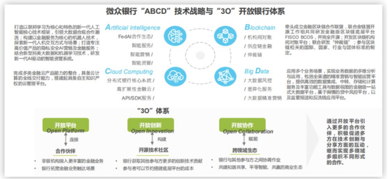 微众银行是国内首家开业的民营银行,目前注册资本为人民币42亿元。区别于传统银行业态,微众银行在战略规划、企业文化、人才培养、组织架构和科技创新上融入了数字化、互联网化的思维。微众银行自主搭建了可支撑海量、高并发交易的银行核心系统。结合腾讯的生态系统、微众银行自身的技术实力和研发资源,微众银行成功打造出颠覆性的信用分析系统,提出了可持续增长的和盈收健康的普惠金融数字化新主张。