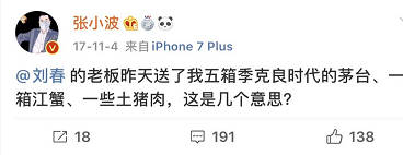 有文,就得有酒啊,大家可能最熟知的就是张总的“茅台梗”。