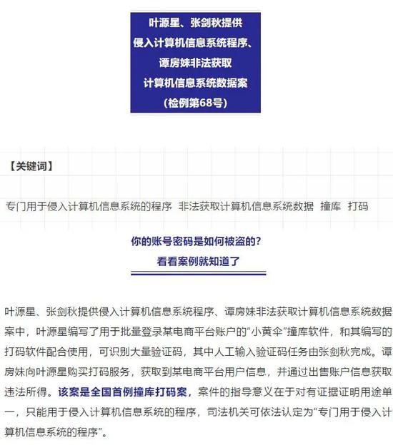 4月8日,最高人民检察院召开了以“严厉打击网络犯罪,共同防控网络风险”为主题的新闻发布会,发布了最高检第十八批指导性案例,其中就包括全国首例撞库打码案。