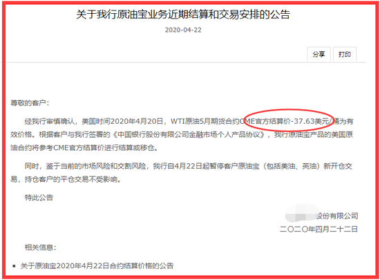 按照中行的公告,他们将按照CME的官方结算价-37美元来跟自己的客户结算,简直是开国际玩笑,因为中行的自己的敞口单子,压根就不可能是全部在-37美元甩出去的,也更不可能进入交割程序,即便是进入交割程序,那么也完全没有理由用-37美元的价格跟自己客户结算。
