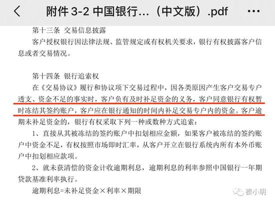 在中行原油宝适用的《中国银行股份有限公司个人账户商品业务交易协议》当中,对于银行的追索权,有明确的规定: