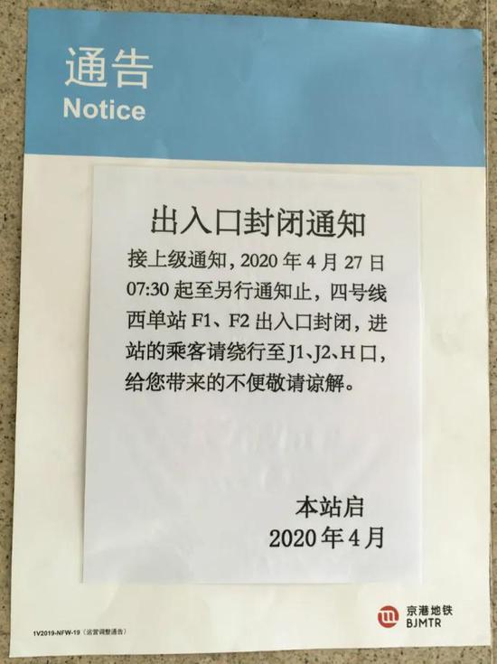 ‘能见’小编现场发现,从4月27日早上7:30开始,通往中国银行总部大楼最近的地铁口F口被封闭,所有地铁乘客须往相反方向绕行。