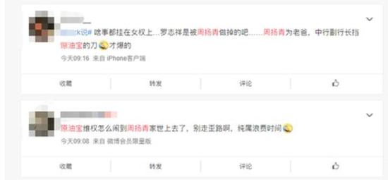 更有网友和投资人脑洞大开,把“周扬青爸爸是中行副行长”与 “中行原油宝事件”联系起来,笑称“周扬青爆料掩护原油宝?“