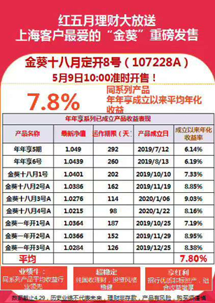 近日,新浪财经收到了招商银行某客户经理发来的一张 “金葵十八月定开8号(107228A)”理财产品宣传页,红红火火的页面版式,配合着大字描绘的7.8%诱人收益,在利率大幅下行的市场环境下,着实有些诱人。