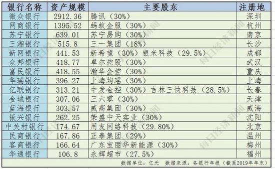 16家民营银行大PK:互联网系霸榜 两家资产规模迈入“千亿级”