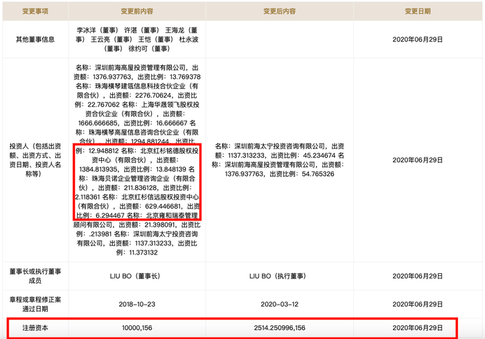 此次工商变更中,创始人柳博仍担任执行董事、法人等职务。柳博曾在平安银行、深圳发展银行任职,负责贷款零售等业务,还曾履职美国按揭贷款公司AMERIQUEST。在大道金服之前,柳博创立了大数金融,涉足小额信贷。大数金融同样有红杉资本和PAG投资。