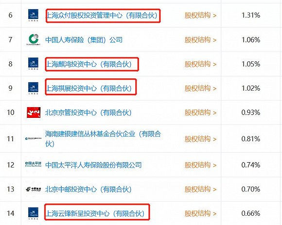 紧接着是上海麒鸿、上海祺展,分别持股1.05%、1.03%,也都至少能分到126亿元、123亿元。