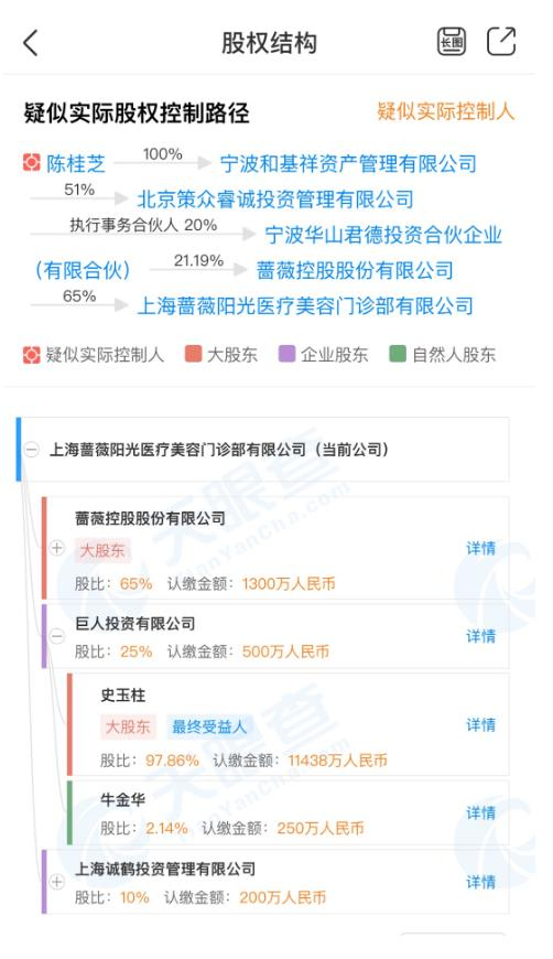 投资界获悉,近日,史玉柱旗下的巨人投资入股了上海的一家医美公司。天眼查数据显示,7月24日,巨人投资新增投资企业——上海蔷薇阳光医疗美容门诊部有限公司(简称为“蔷薇医疗”),持股比例25.11%。该公司成立于2019年,注册资本2000万元,巨人网络董事长史玉柱为最终受益人。