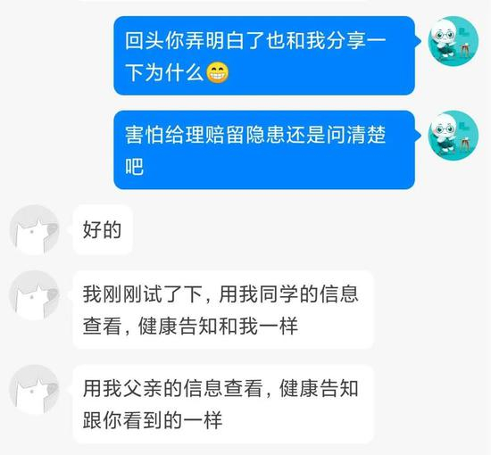 但我看到的还是文章那版健康告知(事后反应过来,因为支付宝实名认证了,即使用的别人的链接,但一进投保页面,系统就自动识别出了我的身份,那我肯定看到的还是同版健康告知)。