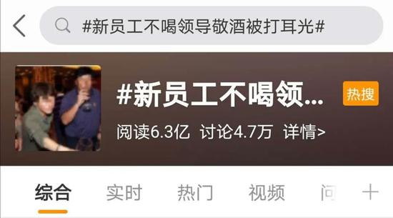 在涉事银行回应后,相关话题#新员工不喝领导敬酒被打耳光#今日登上热搜。
