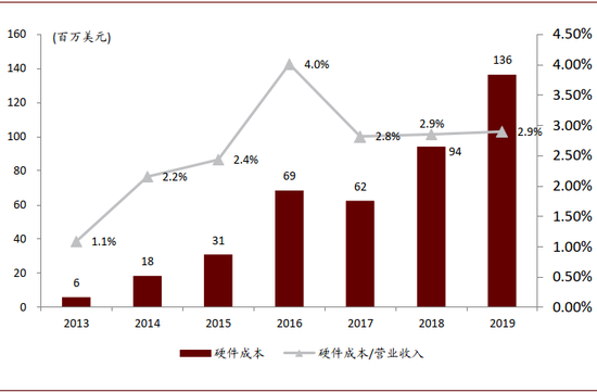 图表: 近三年Square硬件业务成本在总营收的占比稳定