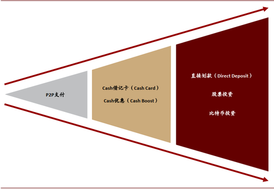 作为消费者的电子钱包和投资平台,Square的Cash App提供支付转账功能,以及比特币、股票投资功能