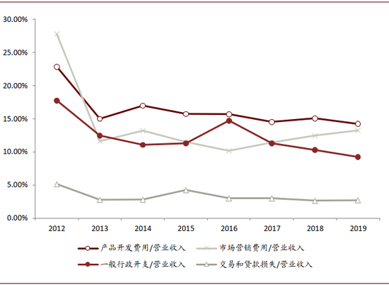 图表: 市场营销费用占比近年上升,其他各项占比长期下降