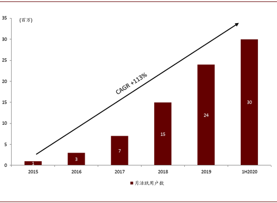 图表: Cash App月活跃用户15年至今CAGR高达113%