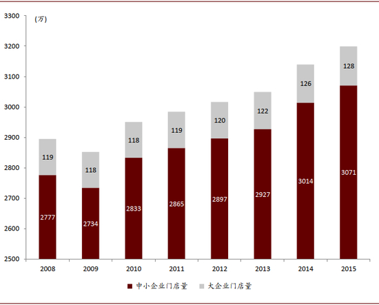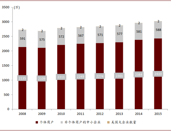 资料来源:U.S. Census Bureau, Small Business Administration,中金公司研究部;注:中小企业门店量为非个体商户的中小企业门店量以及个体商户数量之和。