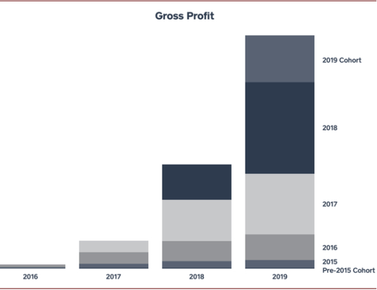 图表: 16-19年各年度Cash App客群毛利润留存率均为正
