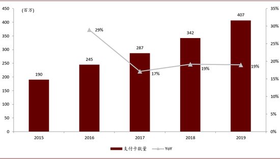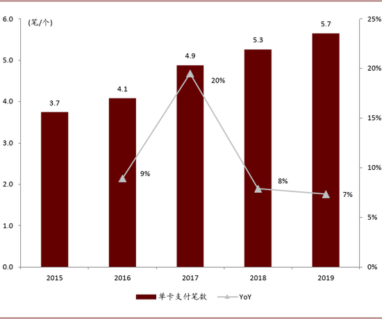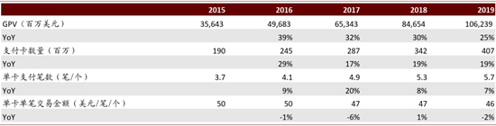 图表: Square 15-19年单卡支付笔数CAGR达10.8%