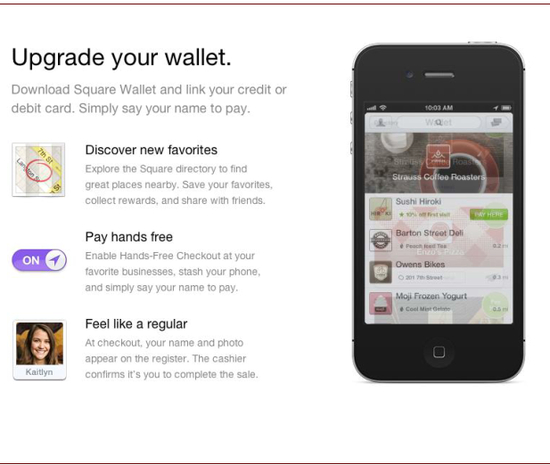 ► Square在产品发展上遇到了阻力——Square Wallet从功能来看是一款具备前瞻思想的产品:首先,它能够绑定消费者的借记卡和信用卡账户,具备移动支付功能;其次,它提供基于地理位置的服务(Location Based Service),消费者能够从地图上搜索、访问附近商家,查看商家菜单、联系电话、其他用户的评论以及获得优惠券,并在手机上完成下单。然而,Square Wallet没有收到消费者的欢迎,最终在2014年下架。