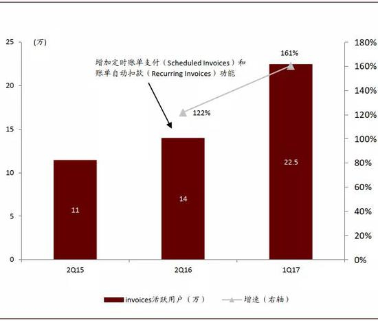 图表: Square优化数字账单功能后产品用户数增速扩大