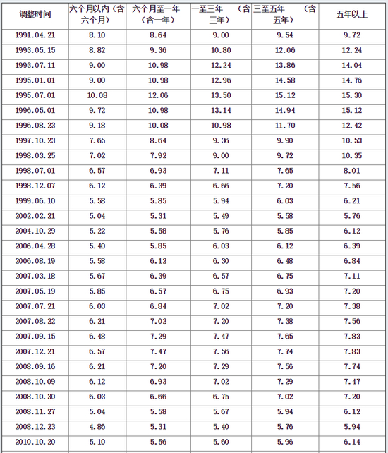 表:1991年-2015年历年银行贷款利率;数据来源:央行