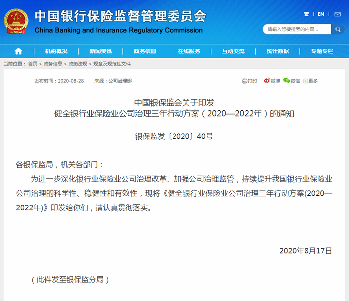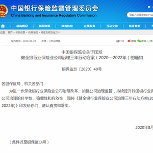 在防范化解重大金融风险攻坚战的收官之年,中国银保监会在监管系统内印发了《健全银行业保险业公司治理三年行动方案(2020-2022年)》(以下简称《方案》),加强公司治理监管,推动银行保险机构健全公司治理机制。