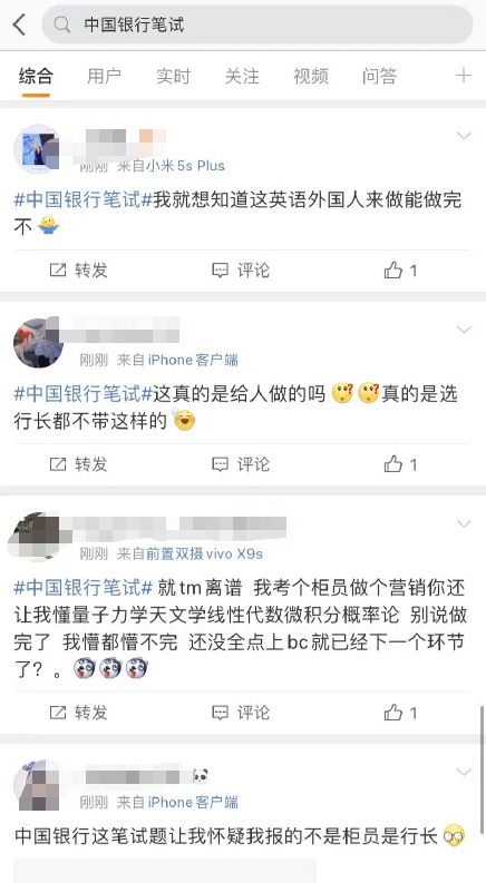 中行、交行笔试题上热搜 网友质疑:难为人