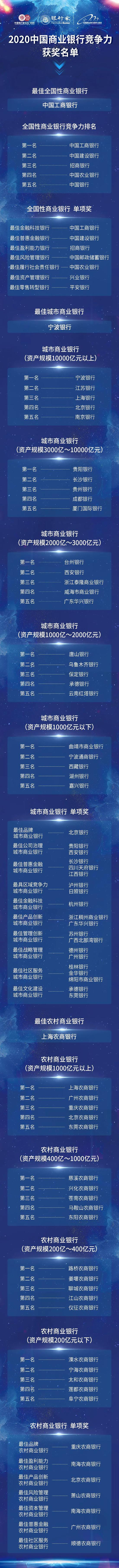 原标题:【独家】2020中国商业银行竞争力评价榜单发布