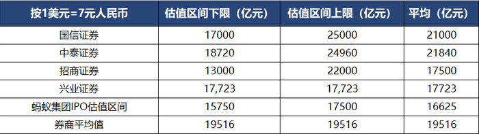 估值系列:一文尽览国内各大券商对于蚂蚁集团的目标价