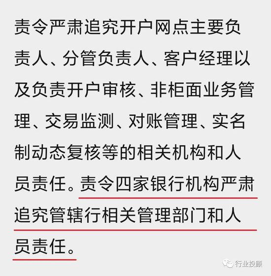 暂停4家银行网点3个月的新开立单位银行账户业务,暂停18家银行网点1个月的新开立单位银行账户业务。